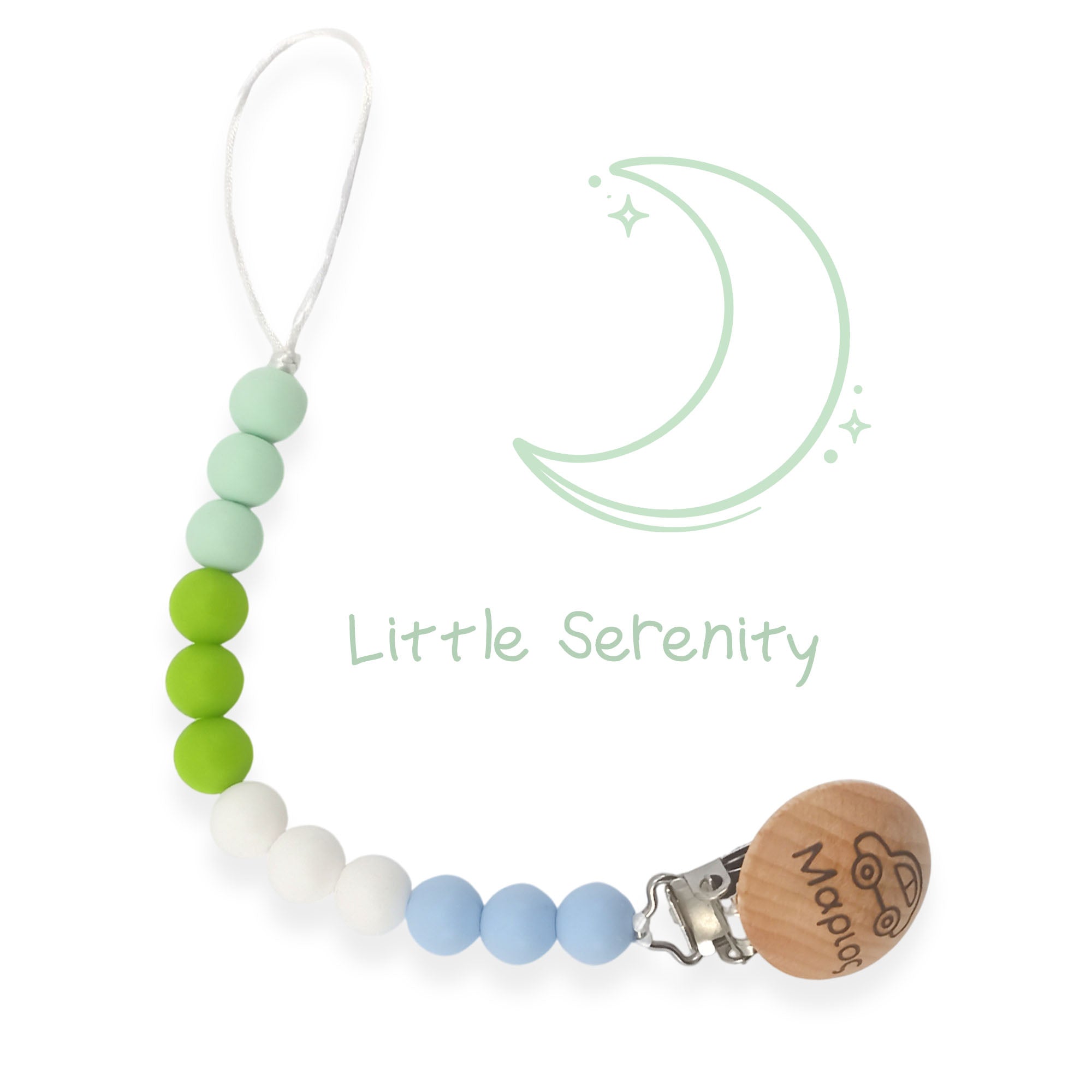 Κλιπ πιπίλας σιλικόνης με όνομα, μασητικό BPA free | Little Serenity