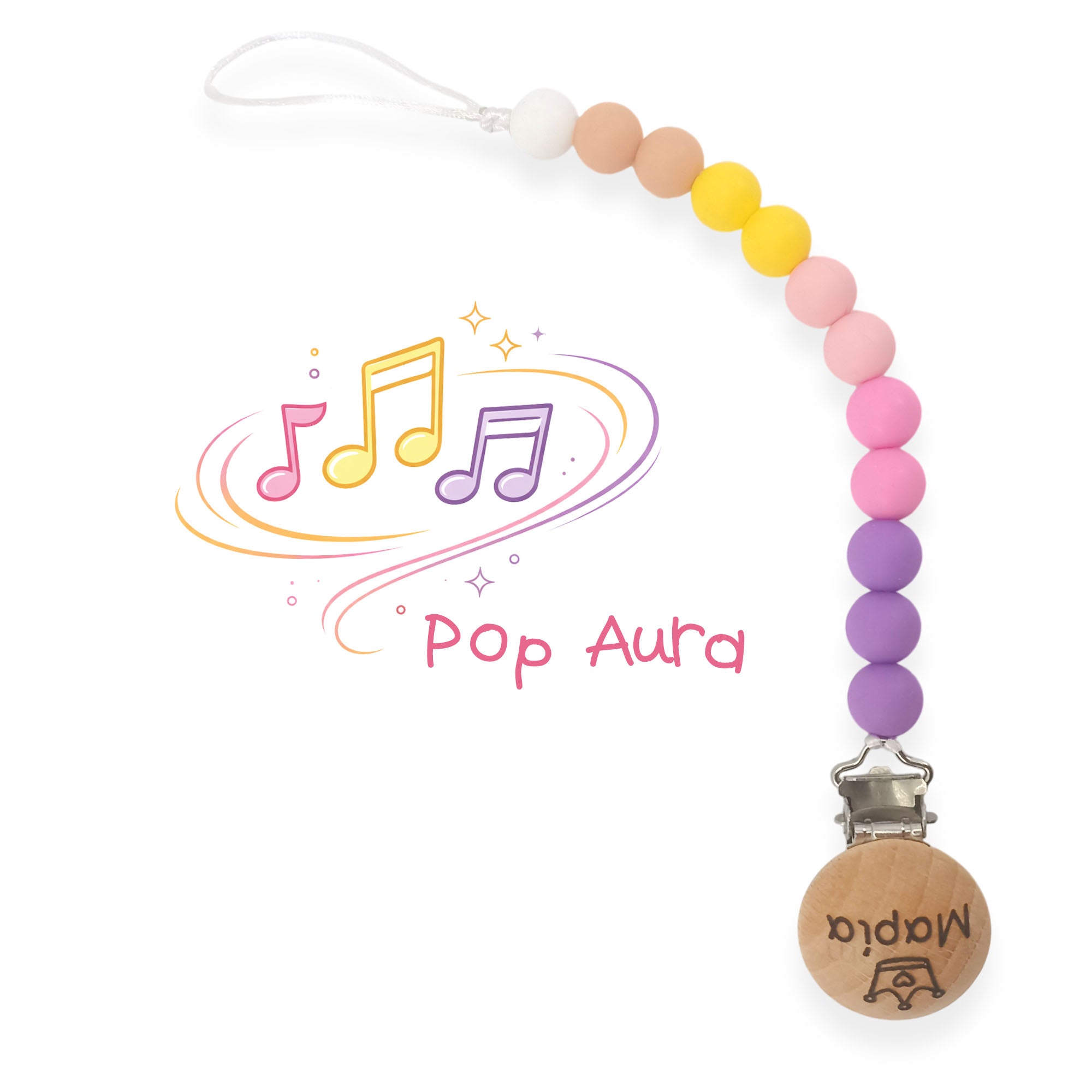 Κλιπ πιπίλας σιλικόνης με όνομα, μασητικό BPA free | Pop Aura
