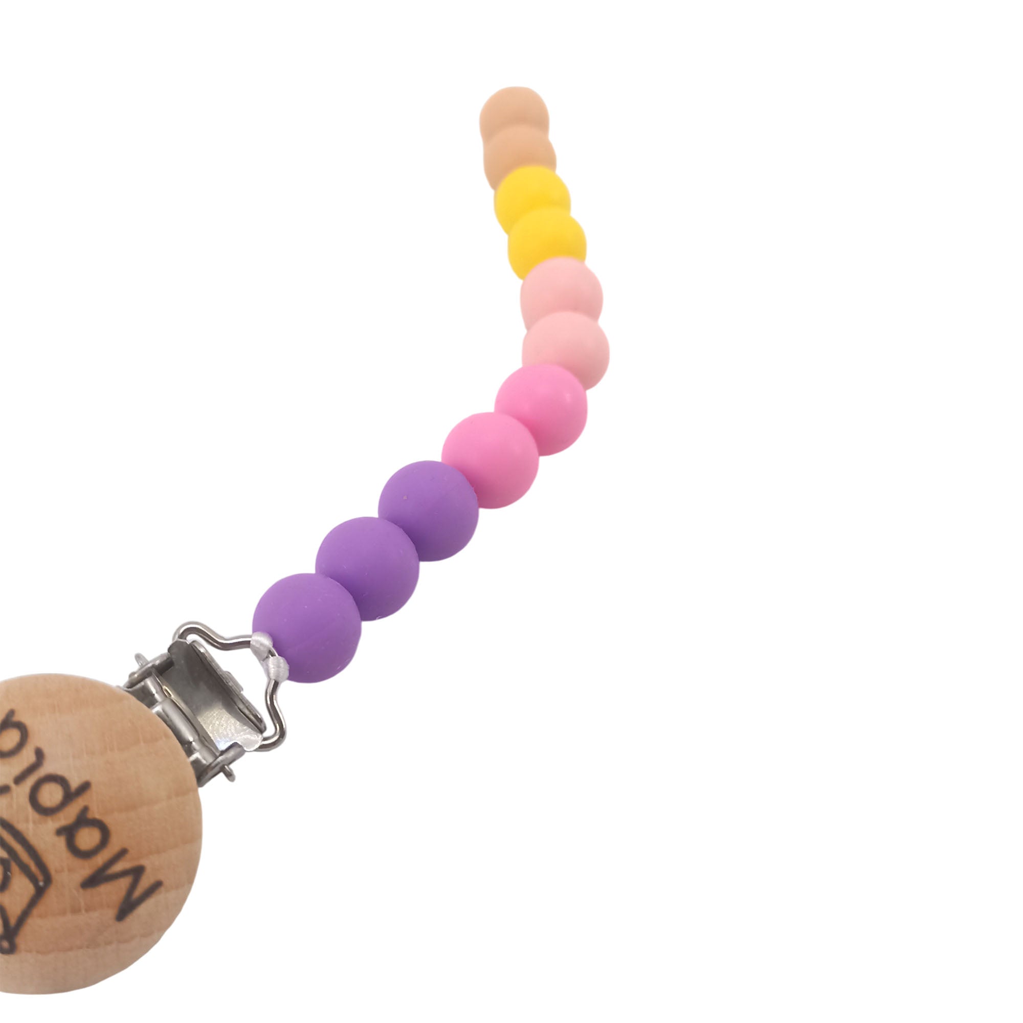 Φτιαγμένο με χάντρες σιλικόνης 🟣 και μεταλλικό κλιπ με ξύλινο διακοσμητικό κάλυμμα ασφαλείας 🌳🔒.
