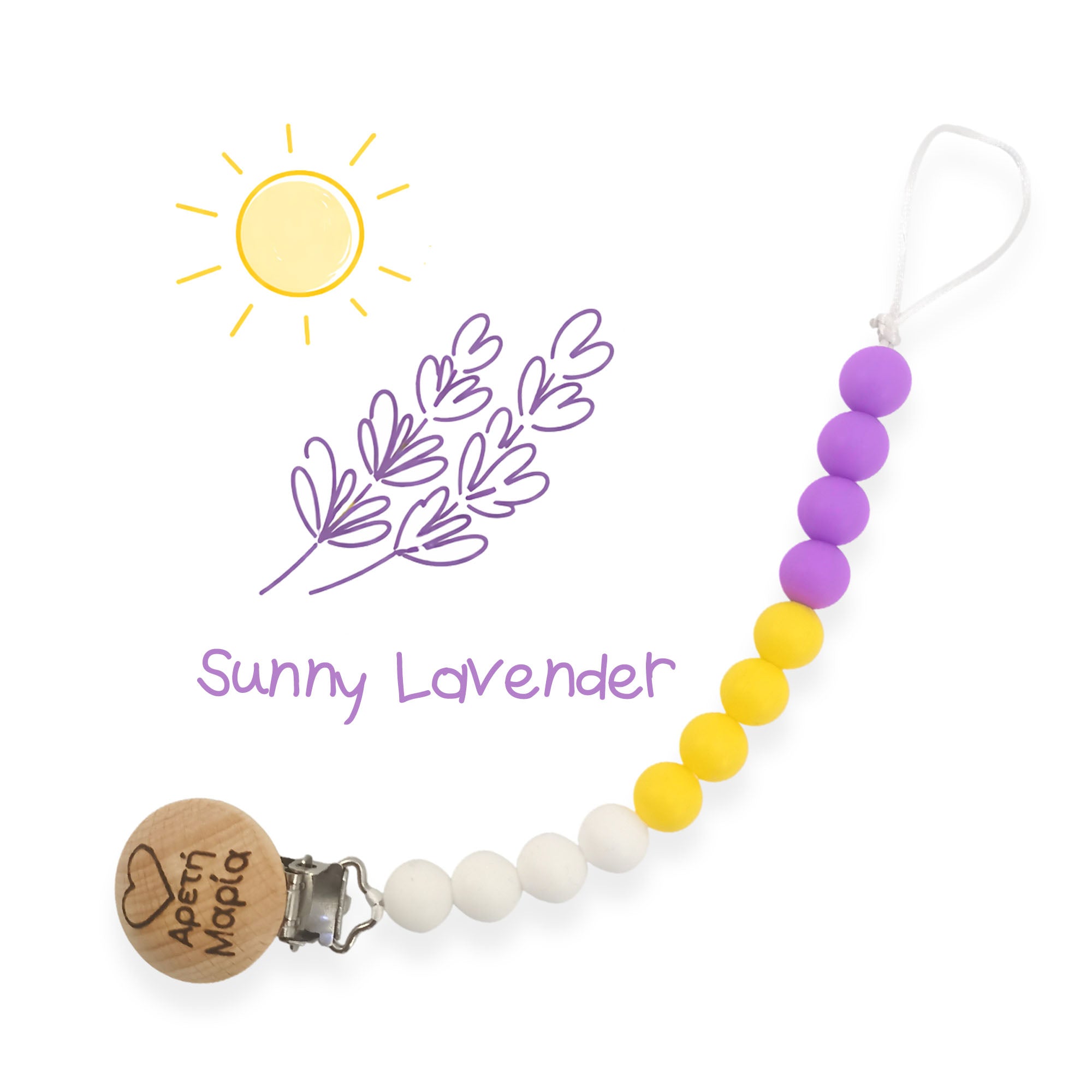 Κλιπ πιπίλας σιλικόνης με όνομα, μασητικό BPA free | Sunny Lavender