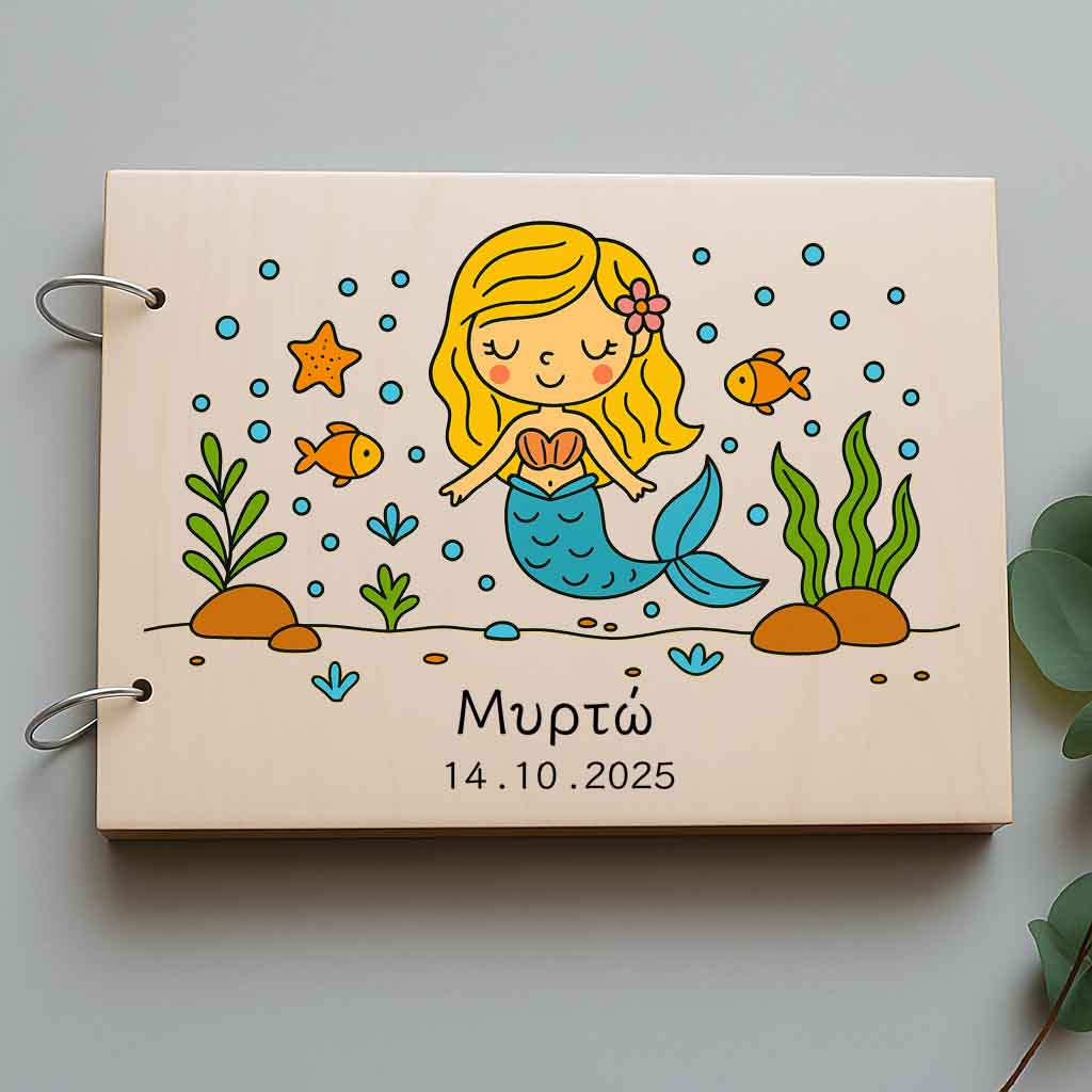 Ξύλινο Βιβλίο Ευχών Βάπτισης | Μικρή Γοργόνα