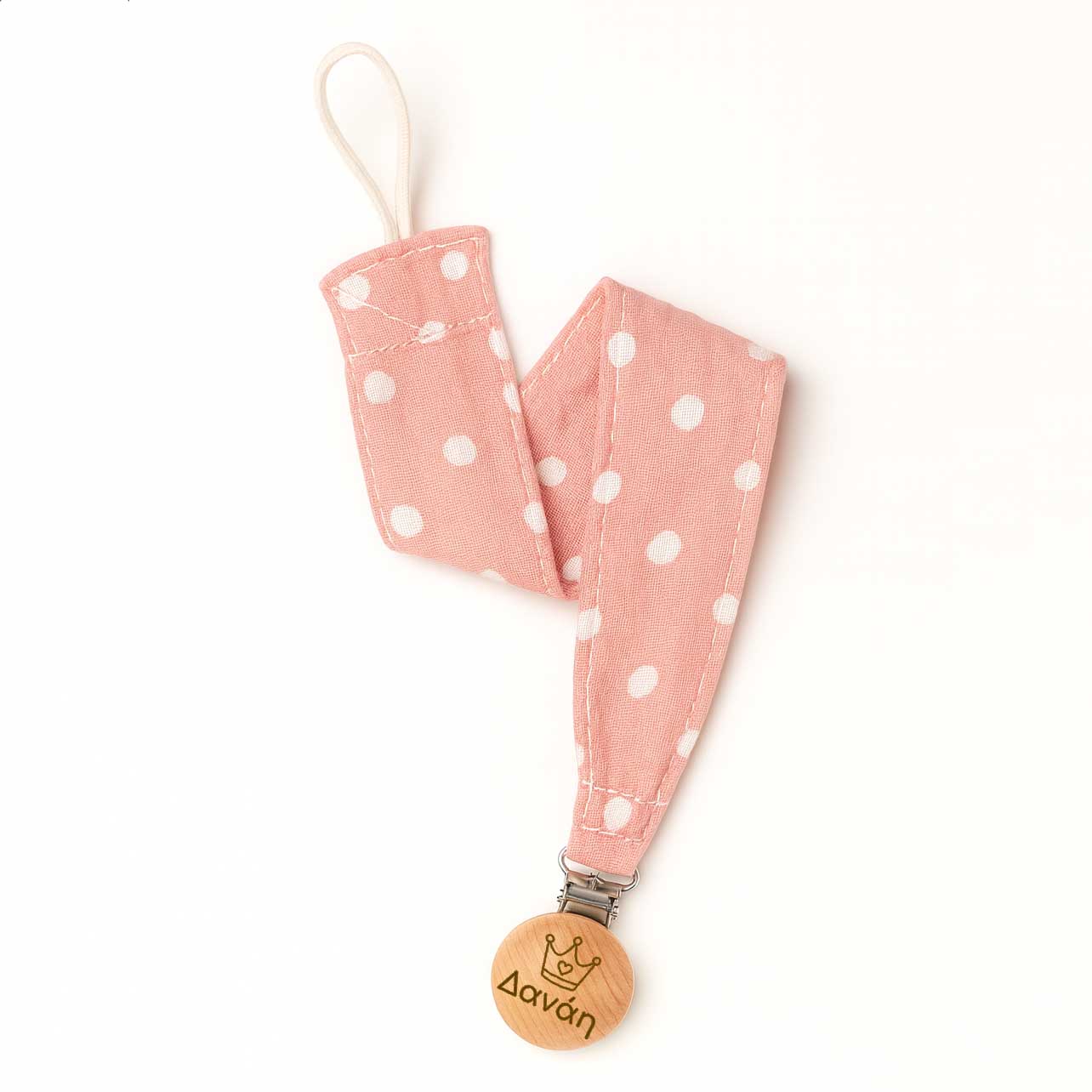 Pink Poua cotton pacifier clip